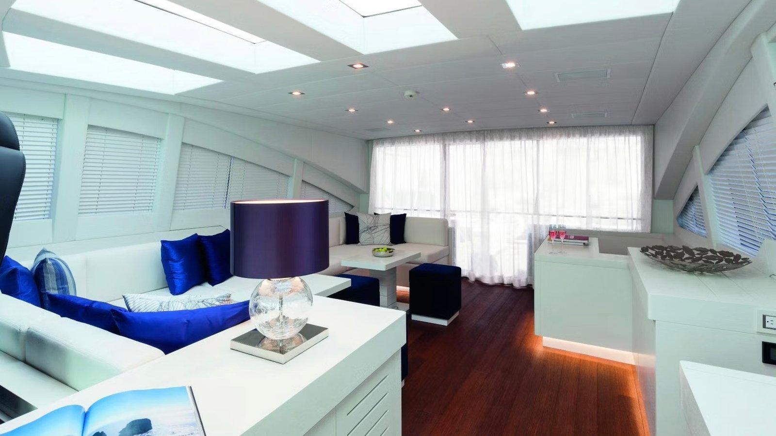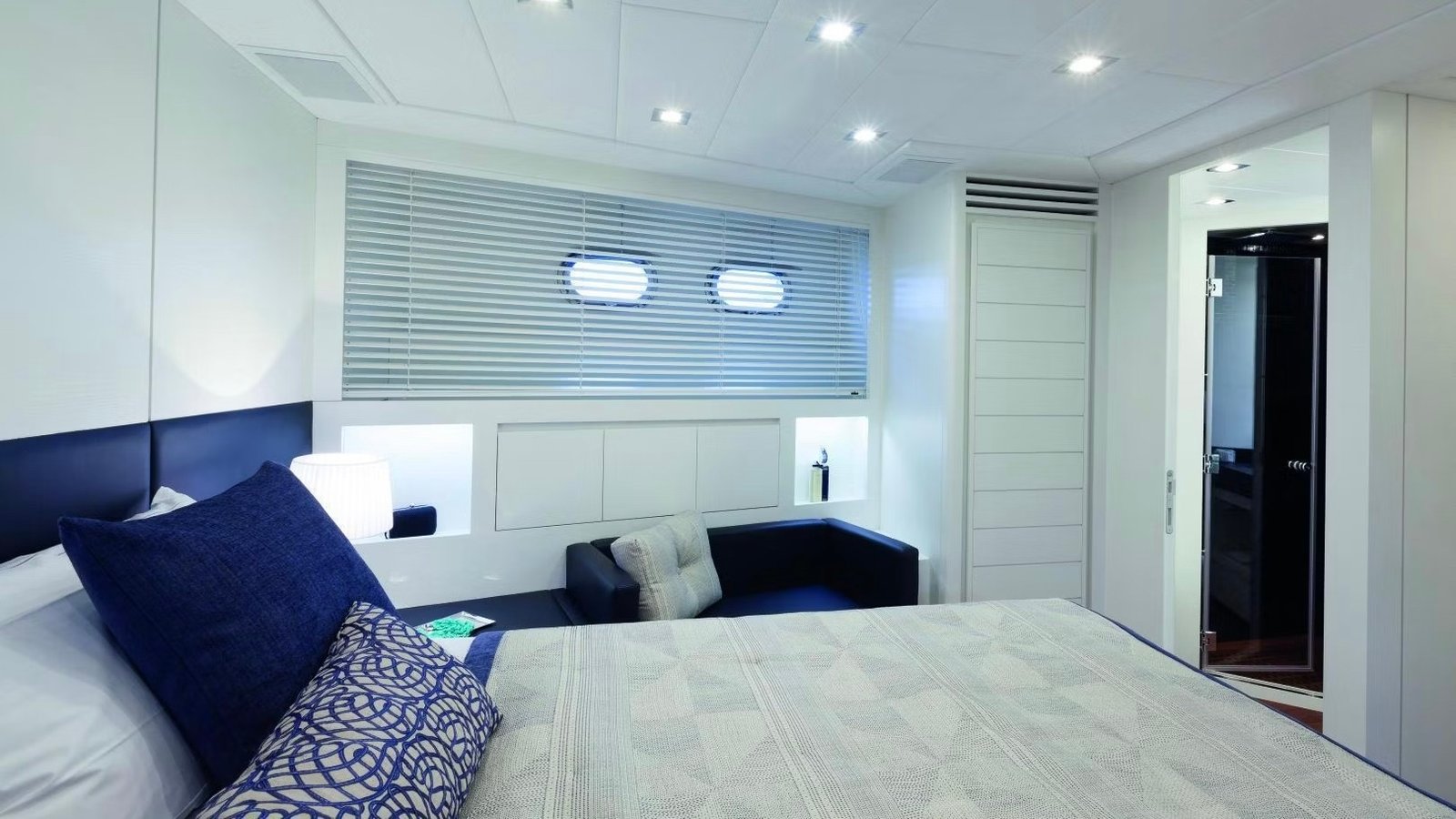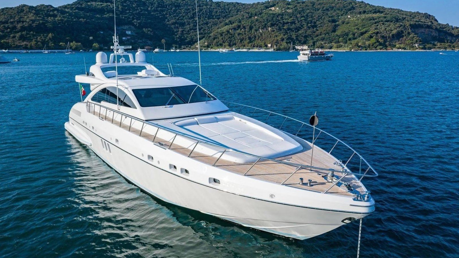 The 82ft Mangusta is a fast, stylish, and powerful Mediterranean sports yacht designed by Andrea Bacigalupo. Part of the renowned 80HT series, she combines performance and elegance in true Mangusta fashion. Powered by twin MTU 2400hp engines, she cruises at 40 knots and reaches 45 knots max speed. Her modified deep-V hull ensures stability and comfort even at high speeds.Since her 2018 launch she has benefited from annual winter maintenance, keeping her in pristine condition. Her bright, modern interiors feature chic furnishings and a spacious main salon with a relaxing lounge area. Below deck, the fully equipped galley and refined décor enhance onboard comfort.Accommodation is for seven guests in three elegant cabins: a full-beam master, a VIP double, and a twin with Pullman, all ensuite.Crew quarters host three members in two cabins for efficient service. Outdoor spaces are ideal for entertaining, with aft sunpads, alfresco dining, and foredeck loungers with an integrated sound system. The perfect yacht for speed lovers seeking Italian design, luxury, and performance.